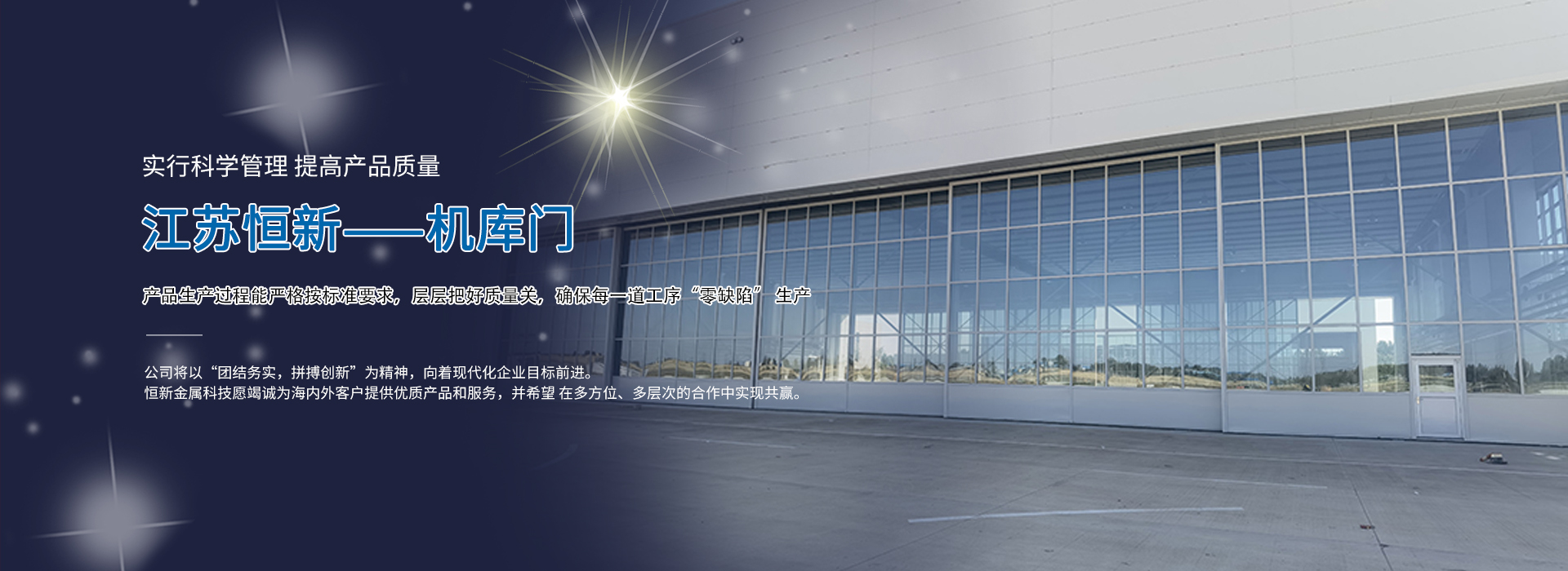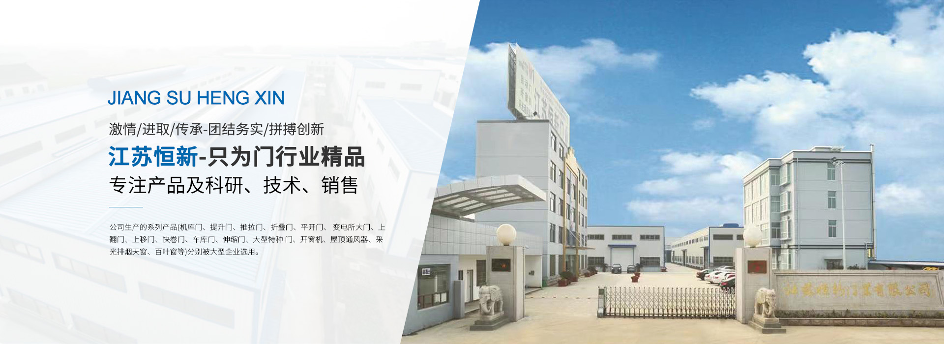 江蘇恒新金屬科技有限公司(原江蘇恒新門業有限公司)是集科研開發、生產制造、經營銷售和技術服務于一體的專業公司,公司位于江蘇省靖江市馬橋開發區,占地面積20000多平方米, 資產總值近 5000萬元。職工200余人,各類專業人員40余人,其中高、中級技術人員達20余人,各種生產及檢測設備齊全,產銷能力15000萬元。公司擁有一支高素質的管理團隊、專業的產品設計開發智囊團、經驗豐富的銷售精英、技術精湛的生產技工及優秀的安裝售后服務隊伍,能充分滿足客戶對產品質量、交貨速度、安裝進度和售后服務的要求。公司生產的系列產品(機庫門、提升門、推拉門、折疊門、平開門、 變電所大門、上翻門、上移門、快卷門、車庫門、伸縮門、大型特種 門、開窗機、屋頂通風器、采光排煙天窗、百葉窗等)分別被大型企業選用。已參與在建和完工的大型項目有:江蘇田灣核電、大亞灣核電站、秦山核電站、華能集團、華電集團、東方重工、熔盛重工、浙江精工、寶鋼集團、南鋼集團、太鋼股份、山東濰柴、徐工集團、三一重工、上海地鐵、北京京港、虹橋機場、陽邏機場、南京 空降、空軍工程建設局、大連瓦軸、拉薩鐵路局、大慶油田、長開集 團、西變集團等。產品暢銷全國二十多個省、自治區、直轄區,深受設計單位和用戶的好評,具有較高的社會信譽度。